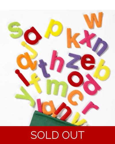 A 26 pcs set of colourful motifs representing each letter of the alphabet. Each letter has a hook and loop dot on the back so can easily be attached to felt boards and backloths. The set comes in a cotton bag for easy storage. Perfect for littel learners ! Age : 3 years +. Not suitable for under 3 years - small parts.