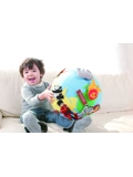 The outer is fabric with stitched detail and there is a pump up ball inside the globe ( pump comes with the set). The globe comes with 7 attachable name labels and 13 picture motifs.